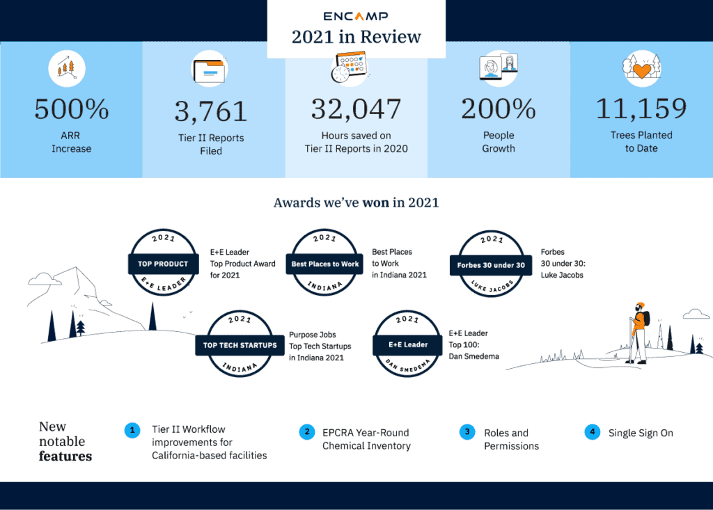 After introducing the groundbreaking Encamp technology in 2018 to make environmental compliance data management more efficient and reporting more accurate, our company’s trajectory has indeed been “incredible.” And in 2021, delivering for our customer’s success has never been more evident.