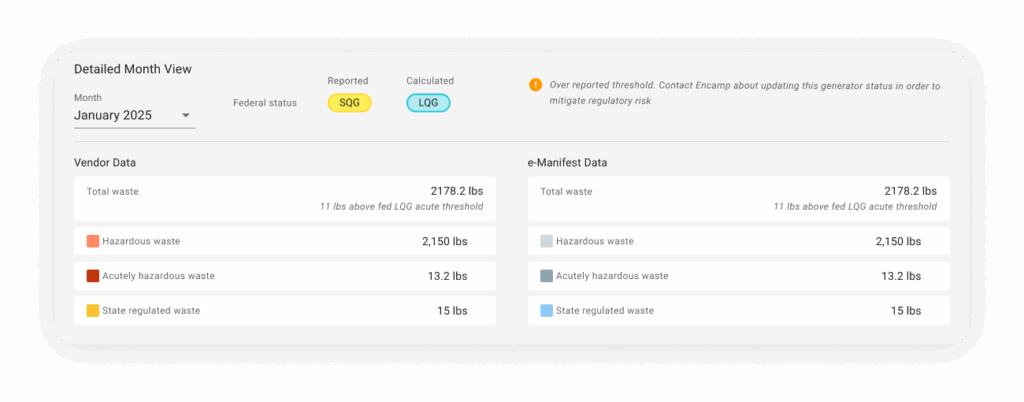 These improvements make RCRA compliance easier, faster, and more reliable. By reducing manual effort and surfacing actionable data inside the Encamp platform, we’re helping you move from reactive reporting to proactive compliance management.