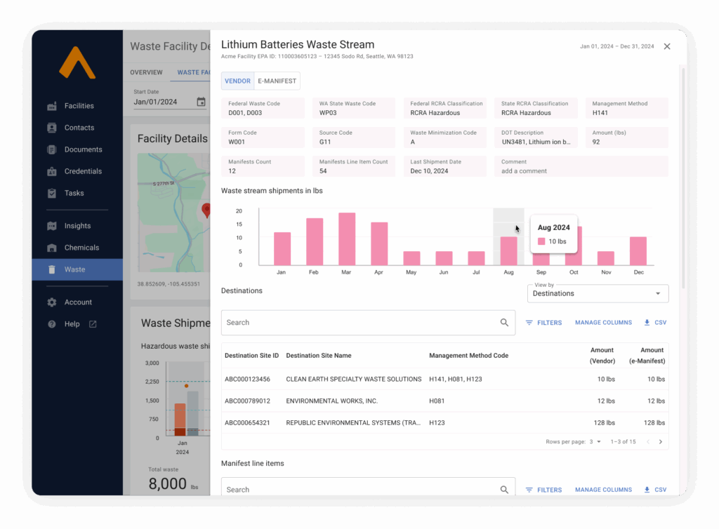 We’ve enhanced our Waste Facilities Profiles to change that. Now with clear insights and easy access to the data you need, you can stay ahead of compliance actions and streamline your waste reporting process.