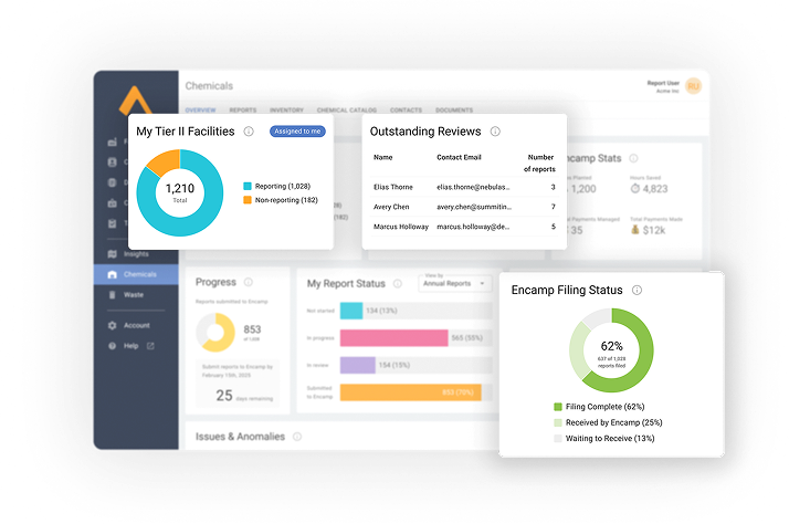 EPCRA compliance becomes manageable when your technology does the heavy lifting. Encamp centralizes chemical inventories, automates Tier II reporting, and integrates with every agency. It’s all backed by experts, so you meet Tier II requirements and keep every facility audit-ready.