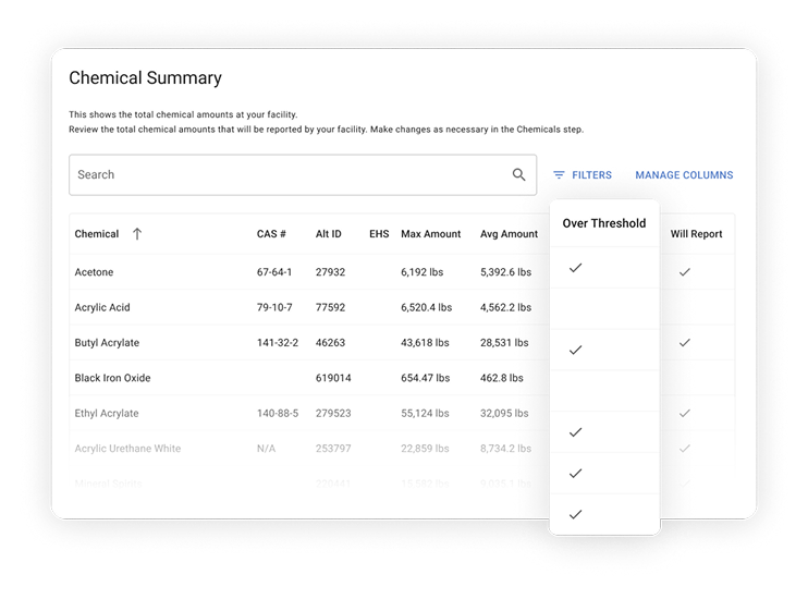 Most EPCRA issues come from missed or misunderstood thresholds. Encamp monitors thresholds in real time, flags chemicals that need attention, and shows you exactly when a facility crosses a reporting limit. This helps you take action early and avoid rushed fixes during filing season.