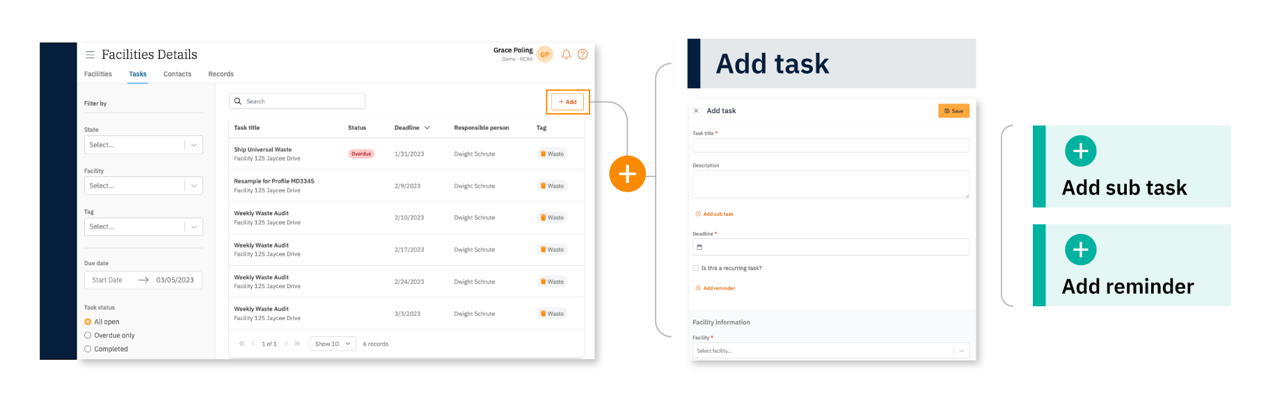 Encamp Tasks is designed to help organizations quickly and easily manage environmental, health, and safety obligations crucial for maintaining a compliant facility. By centralizing task management, you can ensure no compliance obligation slips through the cracks, paving the way for a robust, forward-looking and modern program.