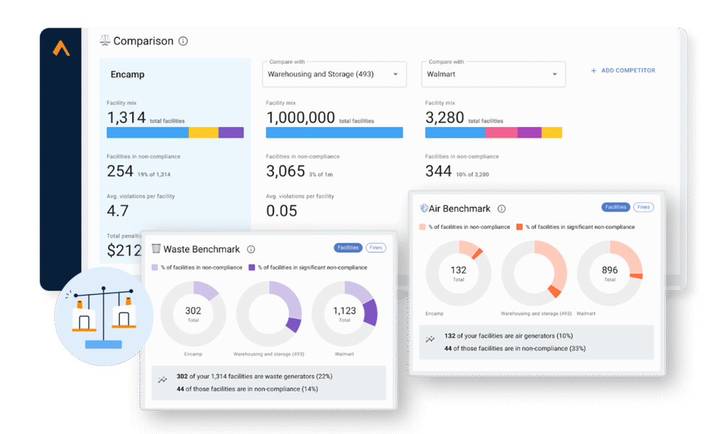 Encamp Insights helps you understand exactly how regulators see your environmental compliance record, benchmark performance against your peers, and view your compliance program over time in order to demonstrate departmental value.